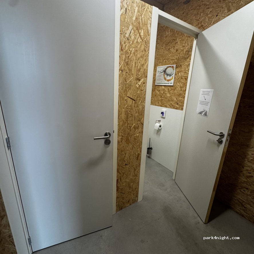 Gepflasterte Stellplätze auf und um das Gelände. In den Sommermonaten stehen zusätzliche Stellplätze auf der Wiese zur Verfügung.