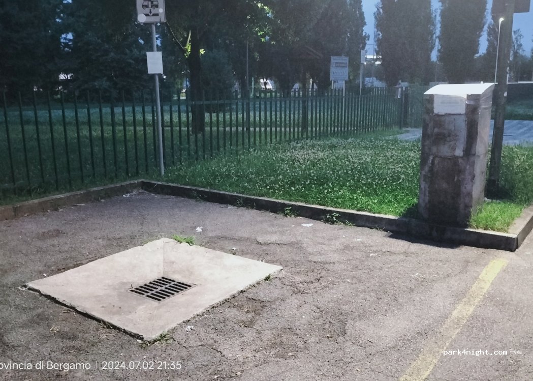 parcheggio accanto alla strada principale, ma anche vicino a un bel parco e al centro cittadino (molto carino nonostante piccolo). unica nota negativa: gli aerei di orio al serio sopra alla testa.