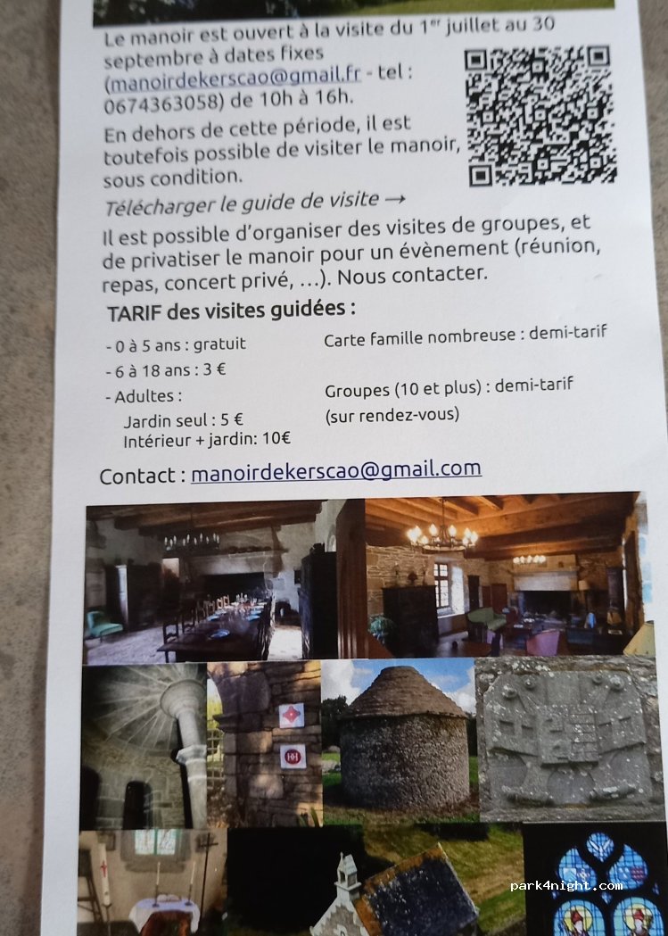 parking calme et agréable pas de commodités mais gratuit n oubliez pas d aller au manoir de kerscao