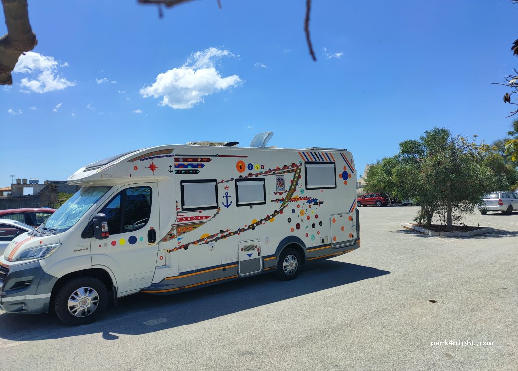 Parking très pratique (proche du site de Selinunte), plat, grand et propre. Très calme pour la nuit. Et un tres bon restaurant de poisson juste en face.