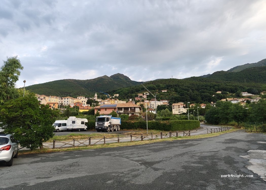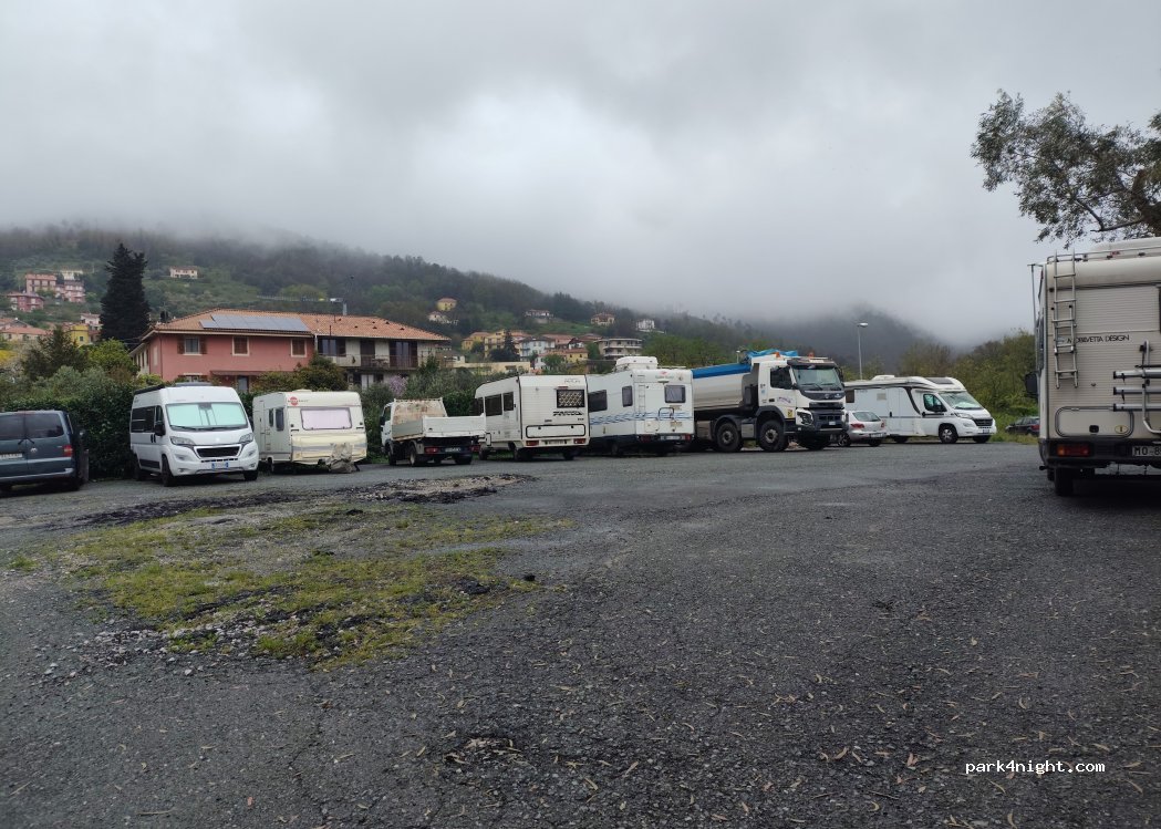 Super grand espace pour tous gabarits. Nous y avons passé une nuit tranquille. Attention en venant depuis la route de Gênes le guidage GPS nous a indiqué l'arrêt où sont rangés 10 camping-cars habitants. il faut continuer 200m plus loin pour voir à gauche la grande place comme vu sur la photo.