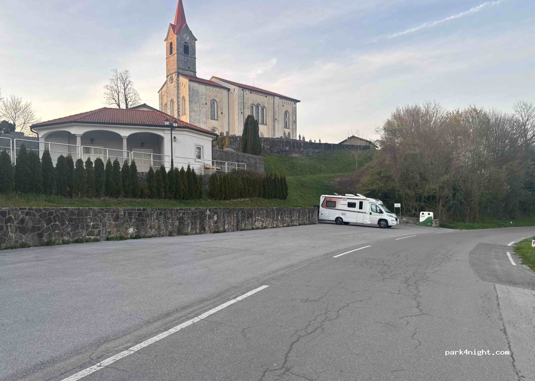 Sehr schöner Parkplatz am Hügel, am Fuße einer Kirche. Sehr ruhig, sehr sauber! Annähernd gerade. Nur ein weiteres Womo war da. Bitte sauber halten! Ist echt zu empfehlen!