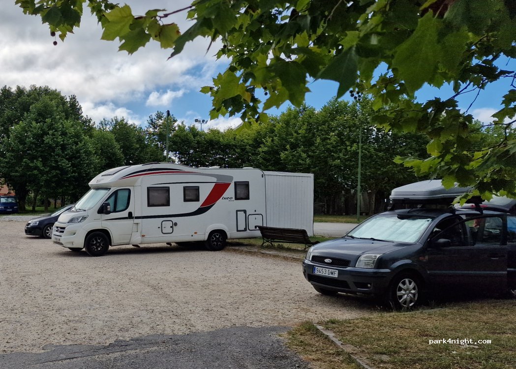 Parking proche du centre ville, avec un point d'eau du robinet sans fils. Route à 100m mais c'est assez calme.