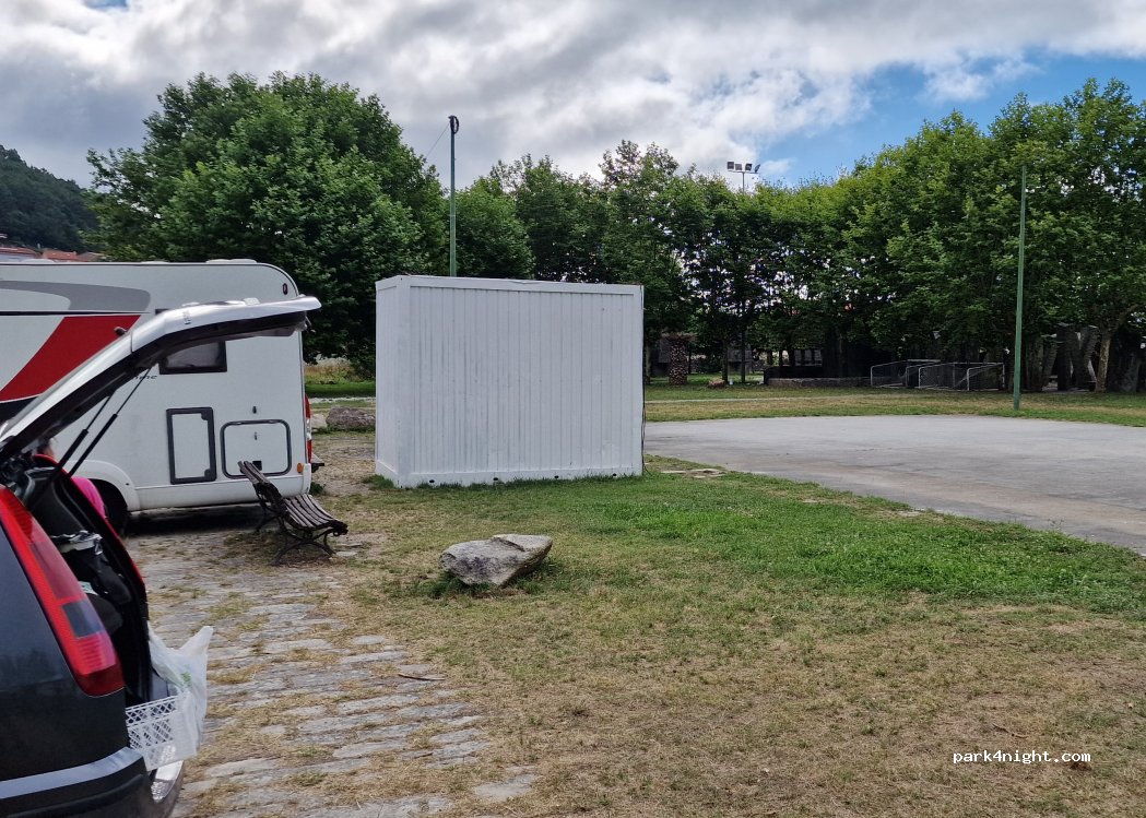 La noche muy bien pero a las 10h han llegado las mariscadoras, que aparcan todas allí y cuando vuelven, lavan los enseres en la fuente y los ponen sobre las mesas de picnic, ahí a garrafones de agua limpiando los bártulos. También hemos tenido baile de niñas en el escenario con padres aparcando aquí que es una calle sin salida, imposibilitando maniobrar. Cuando crees estar tranquilo, fútbol.