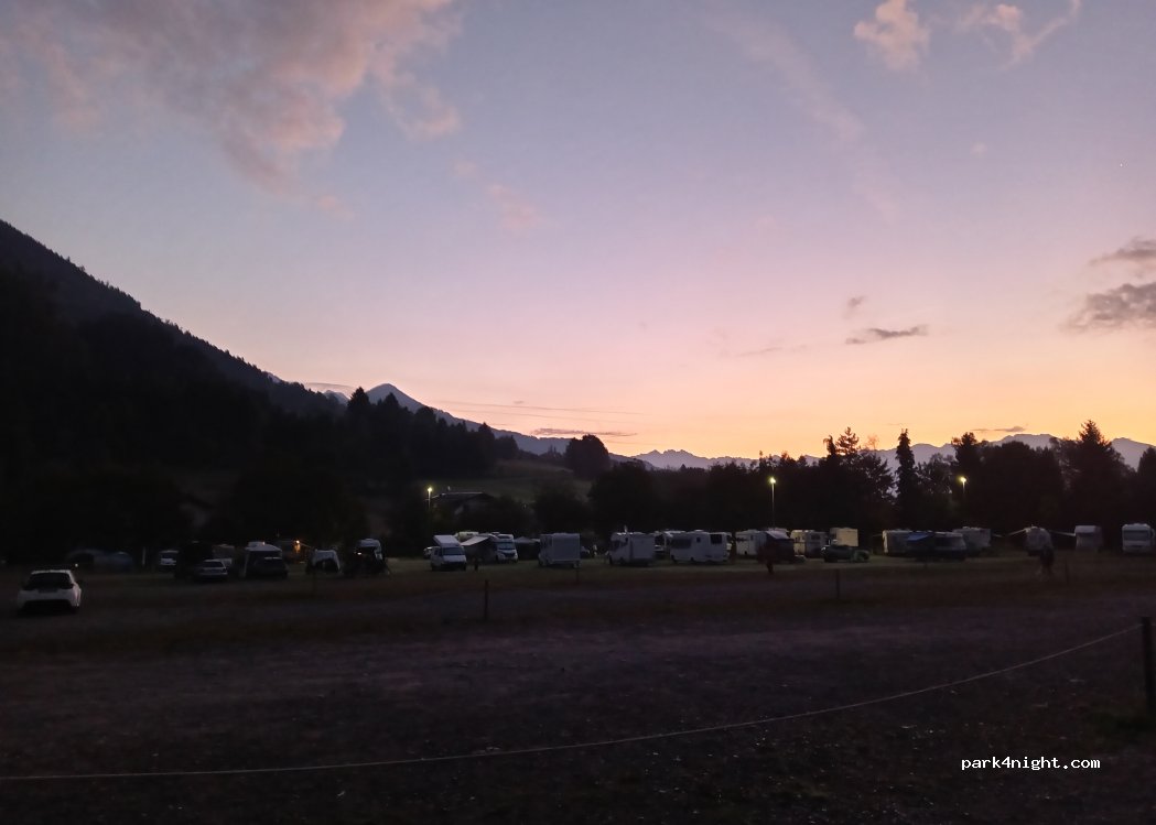 area di sosta su terra, adiacente agli impianti da sci. ottimo punto di partenza, prezzo onesto, bello e pulito il carico/scarico.