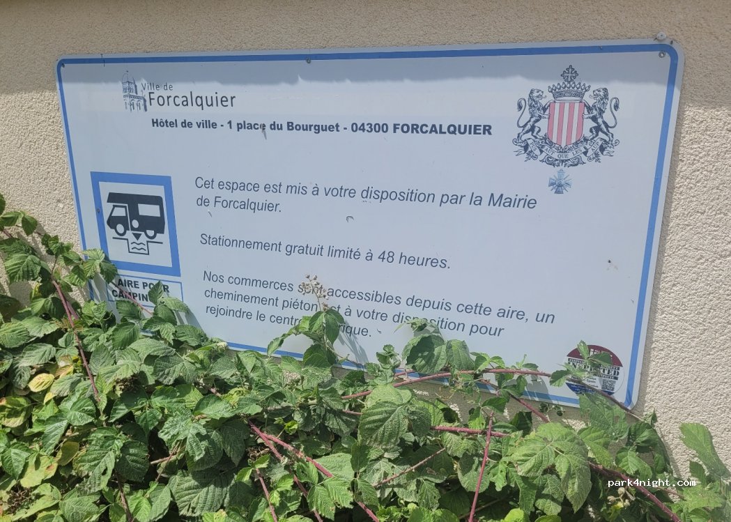 Stationnement et services gratuits. Merci à la municipalité pour un accueil de cette qualité. A 5 mn du centre ville. Forcalquier mérite une visite pour son patrimoine et ses bonnes tables. A voir également les rochers des Mourres sur la route de St Etienne les Orgues.