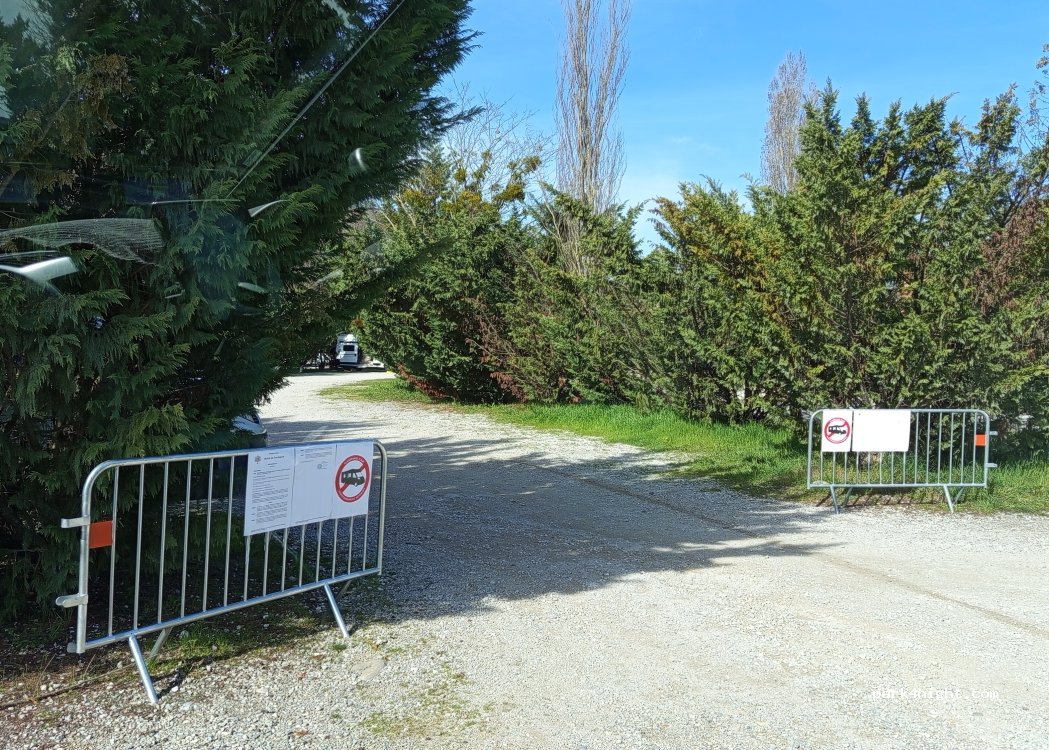 une aire qui était très bien et laisse à désirer, une seule allée ouverte pour les camping caristes et avec des voitures stationnées partout même sur la vidange, sol en gravier nuages de poussière c'est sale, clairement on ne veut plus de nous.