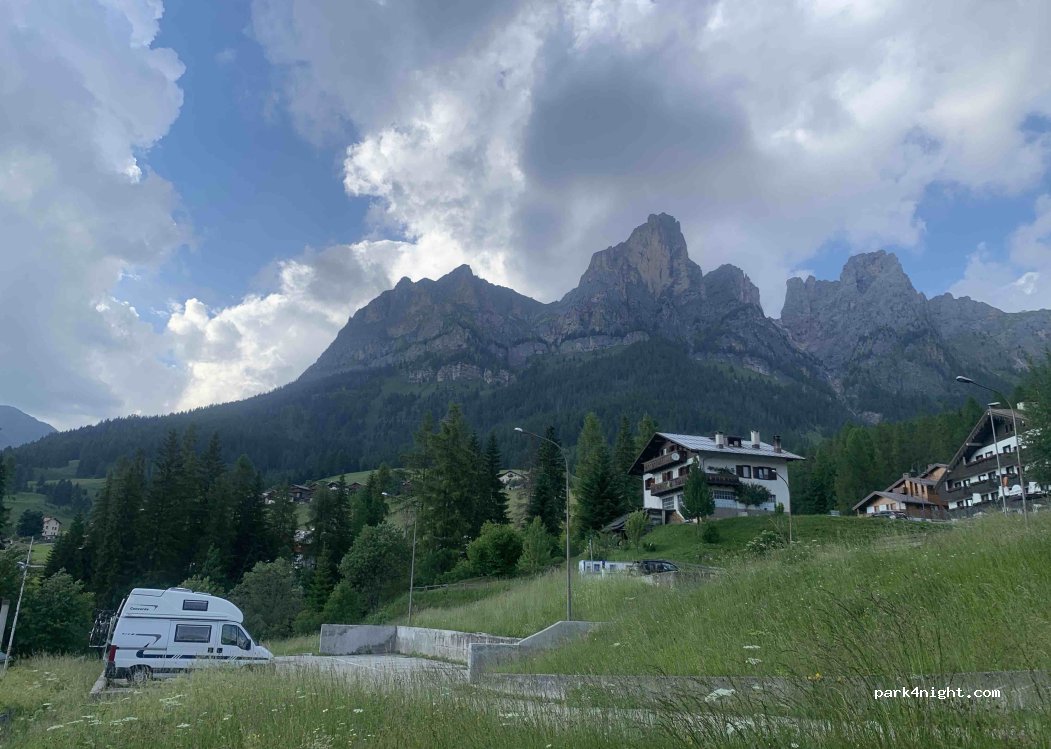Parcheggio a terrazze di fianco al parco giochi bimbi (con fontanella) e sopra ai campi sportivi. Non sarebbe per camper ma, soprattutto fuori stagione, la sosta pare tollerata. Niente ombra né servizi, ma ci abbiamo passato due giorni e due notti ottimi!