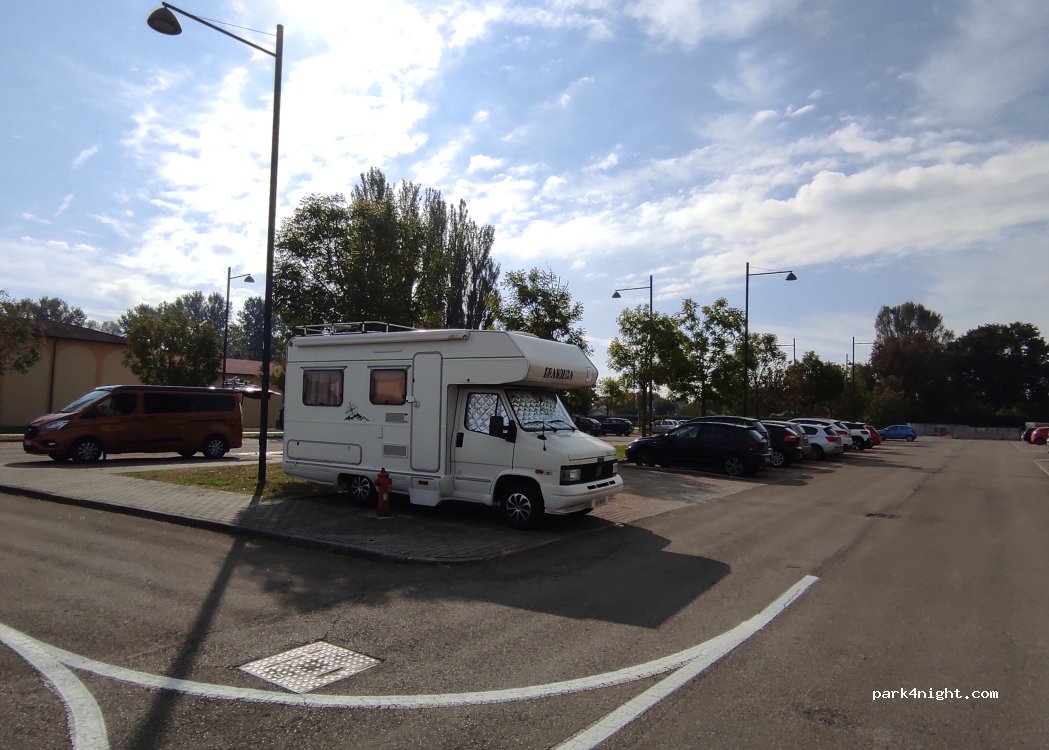 Organized parking by the city. you can unload grey water. it's illuminated very empty. along a relatively quiet road and close to the city center (first terrace has great pinza) and a self-service laundromat. only downside is that there are no toilets and no bush to hide behind