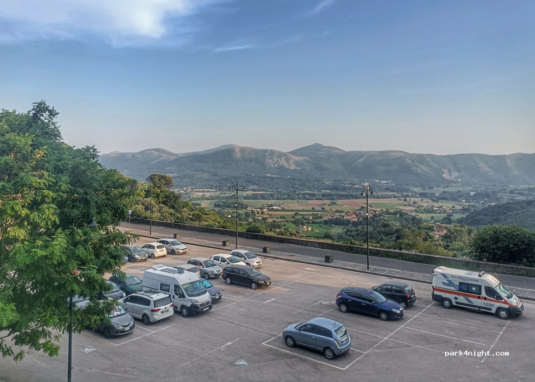 Good spot, quiet, no service, car sized parking places, but we occupied one and a half and nobody complained. really close to Franco Pepe's twice best pizzeria in the world, with delivery to the parking lot. Nice view on the valley.