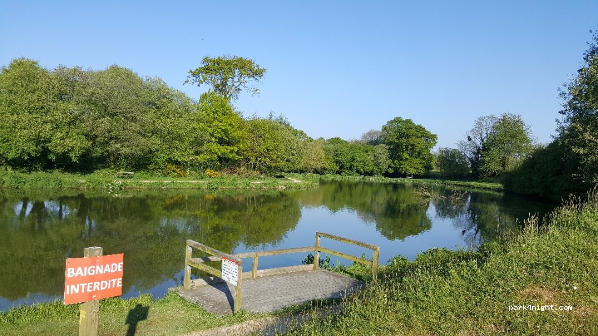 Très belle aire de stationnement au cœur de la campagne. Nous y avons passé une nuit, nous n’étions que 2 campings car. Étang, tables de pique nique, toilettes très propres, espaces verts entretenus. Très calme et reposant. Nous avons fait la balade de 7 kms qui débute à l’étang: facile, ombragée.