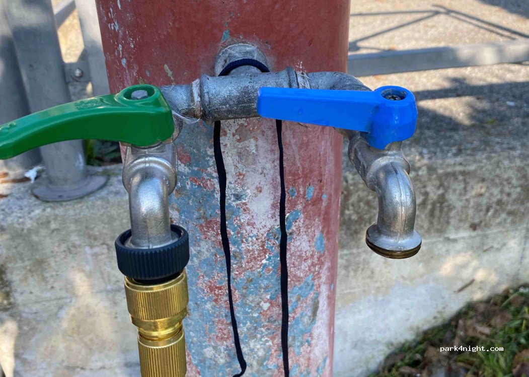 Zone pour remplir et vider l’eau, en revanche interdiction de dormir et stationner !