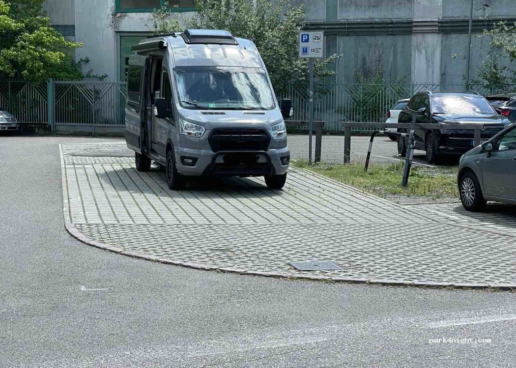 Haben vom 12.8 eine Nacht hier verbracht. Der Parkplatz ist wohl ein Pendlerparkplatz. Also gegen 6-7 Uhr viele Verkehr auf dem Parkplatz neben an. Und im Gebäude neben an war eine laute Maschine die jede 30 Minuten anging. Aber für eine Nacht reicht definitiv. 24h darf man hier stehen. Kostenlos!