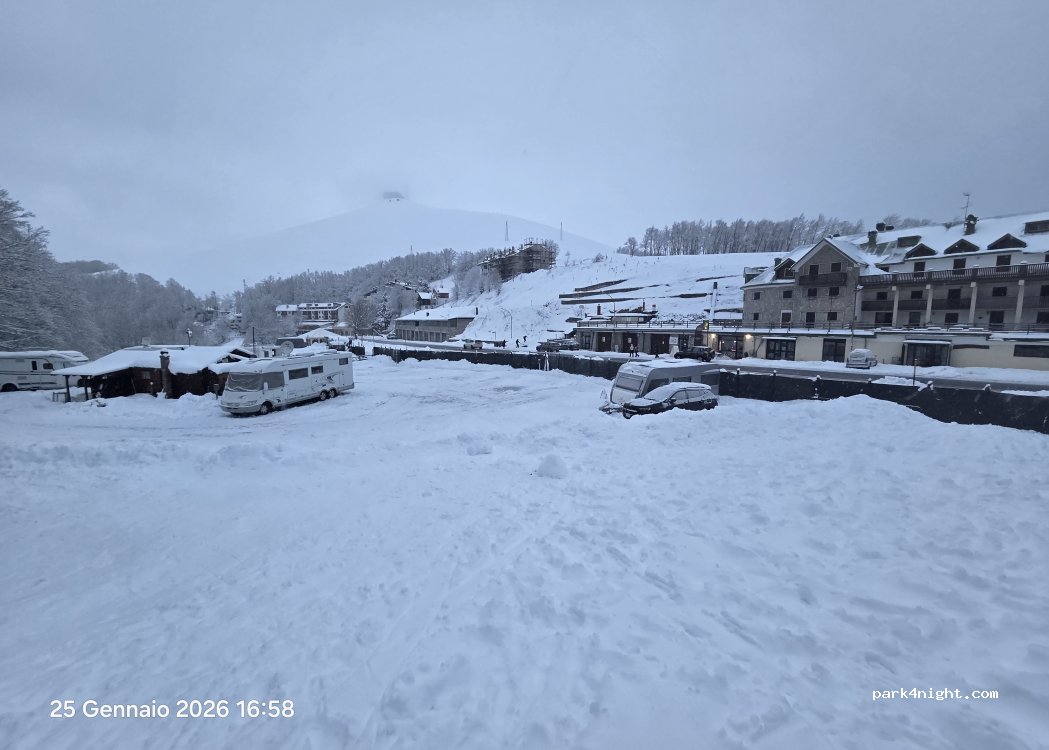 Area sosta ai piedi delle piste da sci. Servizi adeguati al numero di spazi. Gestore gentile. Ci abbiamo soggiornato in occasione della gara automobilistica Rieti-Terminillo, posizione strategica a un km dal parco chiuso della gara. Prezzi modesti. Accettano anche Caravan.