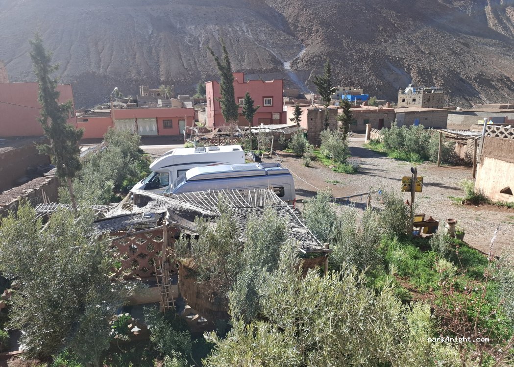 What a gem of a place. Ibrahim and his family go out if their way to help you. You stay in their garden where 2 motorhomes or a couple of vans would fit. There is a berber tent to chill or you can sit in the restaurant/sitting area. You really help this family of 11 kids by staying here. The food is lovely and home cooked - prices are also great. Ask Ibrahim for his price book / menu for prices.