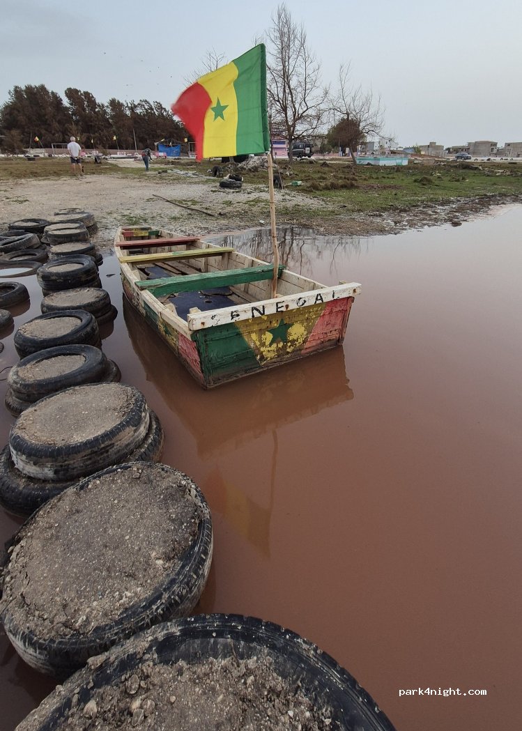 Camping gratuit sur l'herbe près du Lac Rose. Vous pouvez prendre un petit bateau pour une somme modique et voir comment les habitants extraient le sel du lac et entendent toute l'histoire. L'eau dans le lac est plus salée que celle de Dead see!