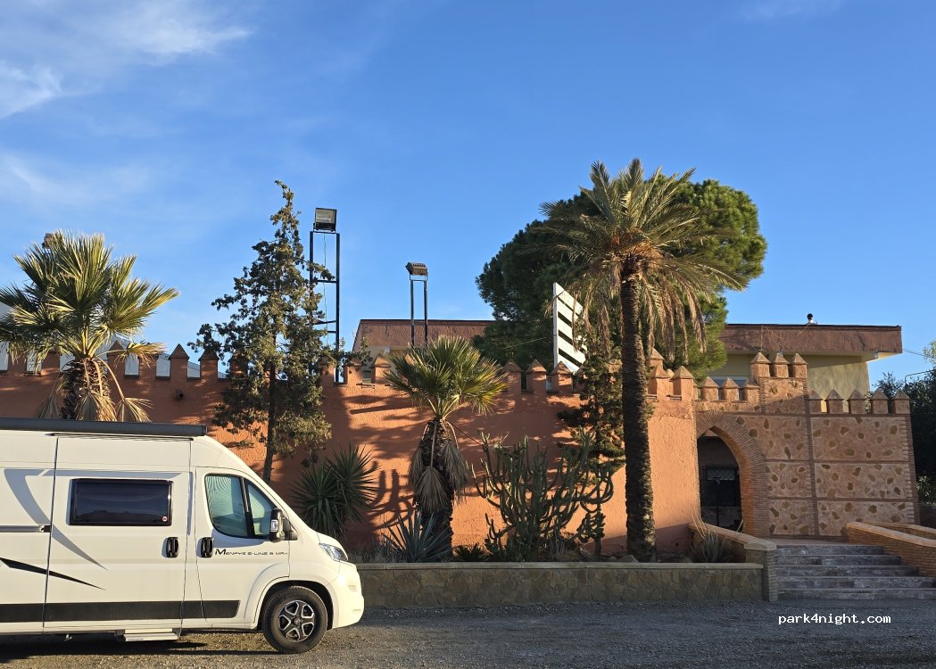 très belle étape, nuit tranquille, excellent restaurant "Antonio" sur le parking , et de déguster ainsi que des bonnes choses. Menu à 20€. Aller visiter le Castillo à 1,2km, superbes vues.
