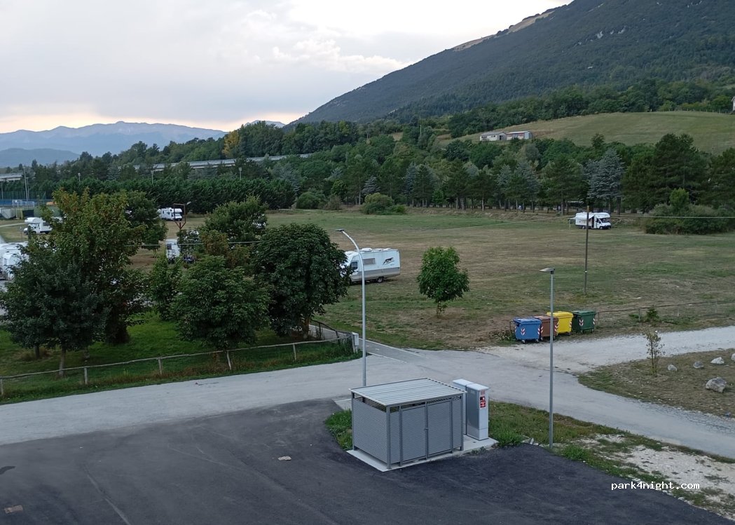Grande parcheggio vicino al Palasport tranquillo e silenzioso la notte. Vicino a Eurospin e altro supermercato. È consigliato prima di parcheggiare ,se necessario, andare nel parcheggio contiguo di Eurospin a fare la spesa. Il borgo non ha nulla di speciale.