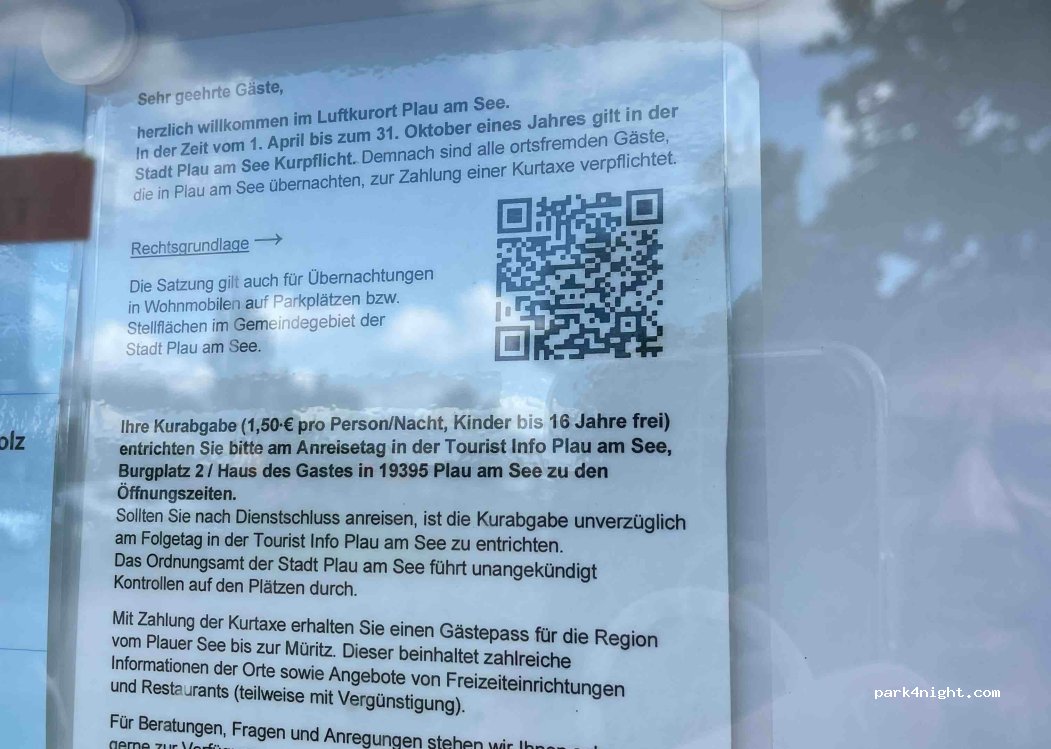 Die Touristeninfo hatte bei An- und Abreise geschlossen. Die Kurtaxe konnte man weder online noch über einen Kassenautomaten entrichten. Der Wille war da! Der Platz ist ordentlich für Übernachtungen, um den Ort zu erkunden. Die Nacht war relativ ruhig. Danke an die Stadt Plau am See für die Möglichkeit!