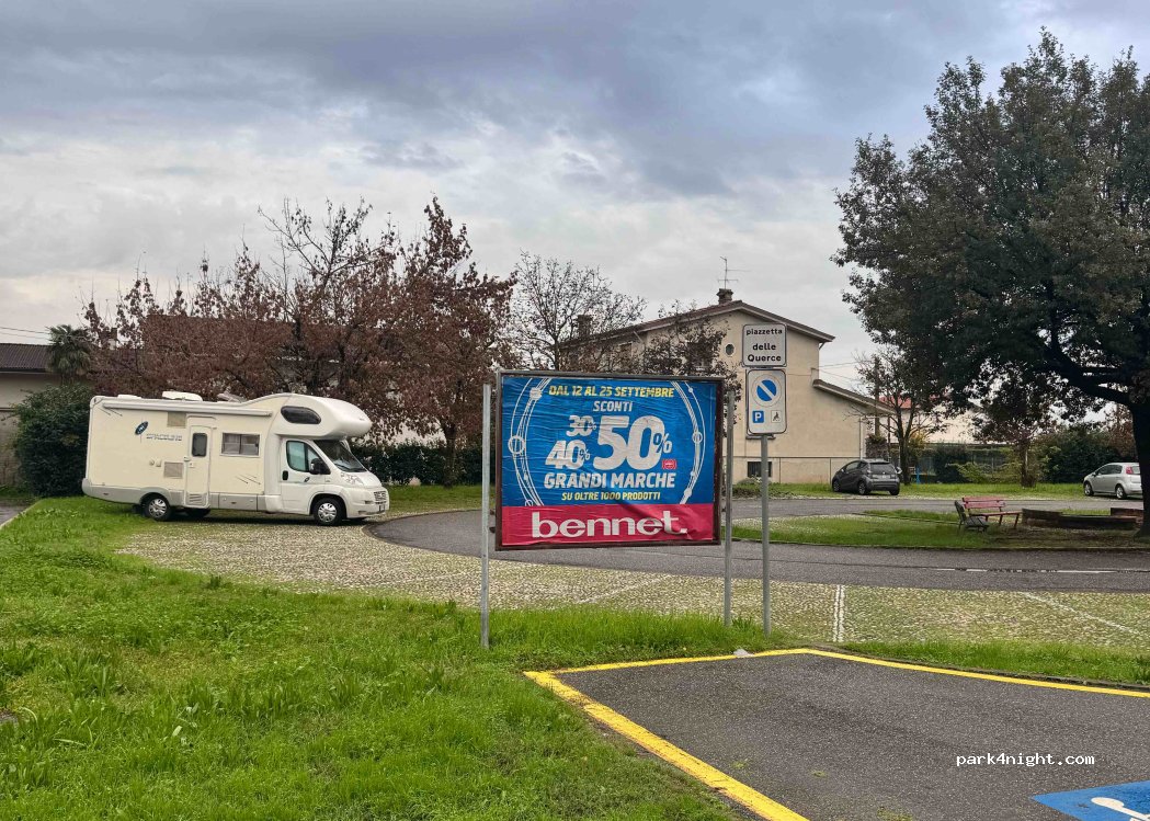 Parcheggio tranquillo, gratuito, a pochi passi dal centro. Trascorsa la notte senza problemi, anche se al mattino la sveglia ce l'hanno data gli automobilisti che vi parcheggiavano e l'auto spazza strade! Di fronte una piscina, a 50 metri Poste Italiane. Vicinanze centro e Rocca. SENZA servizi