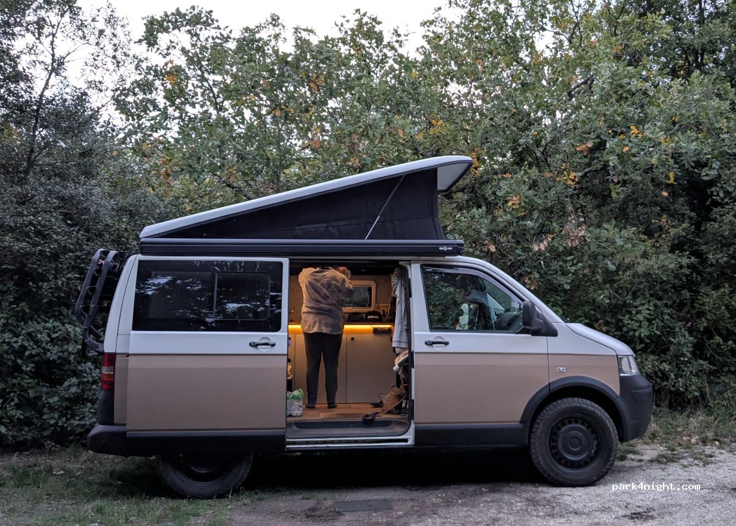 For one night it was okay. In September it was quite full, we got that last free place (6 other vans). On the entrance there is a big hole.