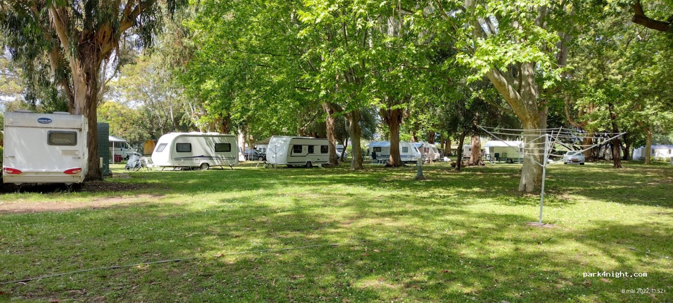 Sehr gemütlicher, schattiger Campingplatz unter Eukalyptusbäumen. Freundlicher Empfang und sehr nettes Personal im kleinen Shop und im Restaurant( kleine Karte aber sehr lecker ) . Die Sanitäranlagen sind einfach aber sauber . Kleiner Pool und ein paar Fitnessgeräte .26 Euro für Campervan +2 Erwachsene .wir empfehlen den Platz auf jeden Fall !!
