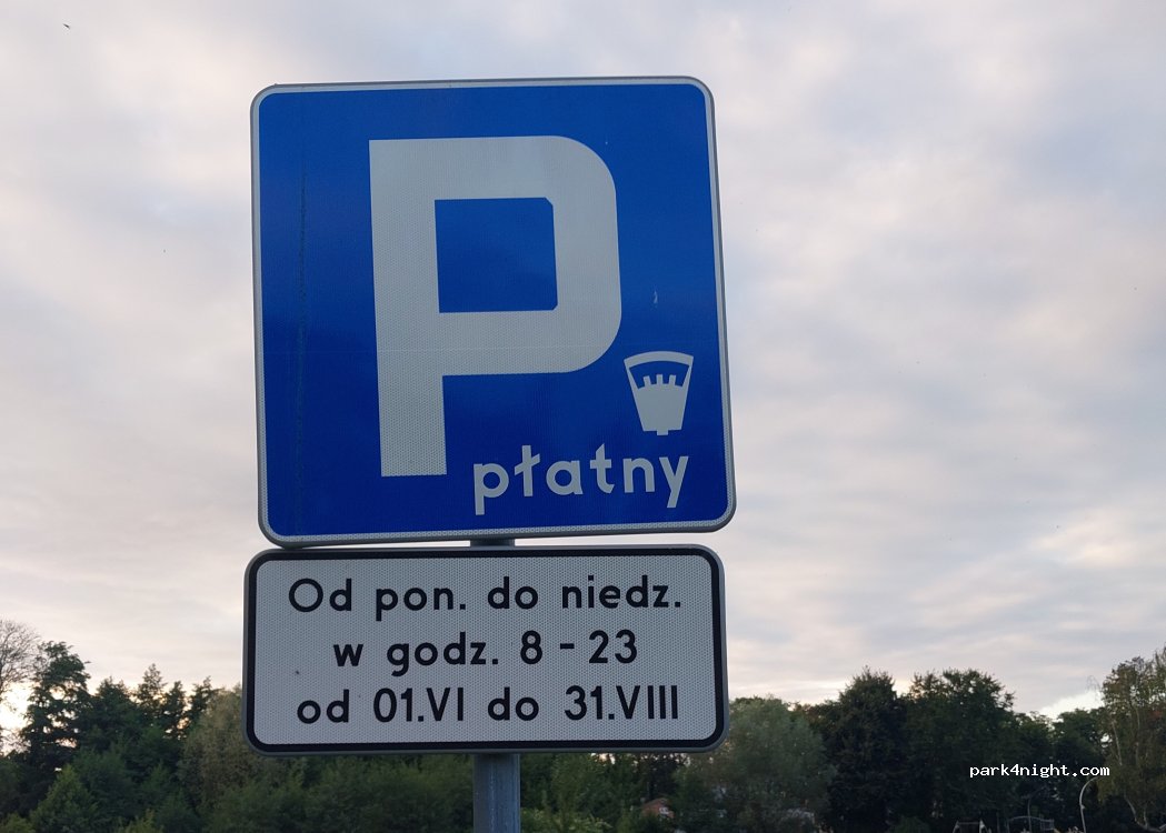 Großer leerer Parkplatz zwischen Hafen und Campingplatz. Abends laute Musik aus der Hafenbar, morgens Lärm vom Hafen, aber die Nacht war sehr ruhig. 15 PLN fürs 24h-Parkticket.