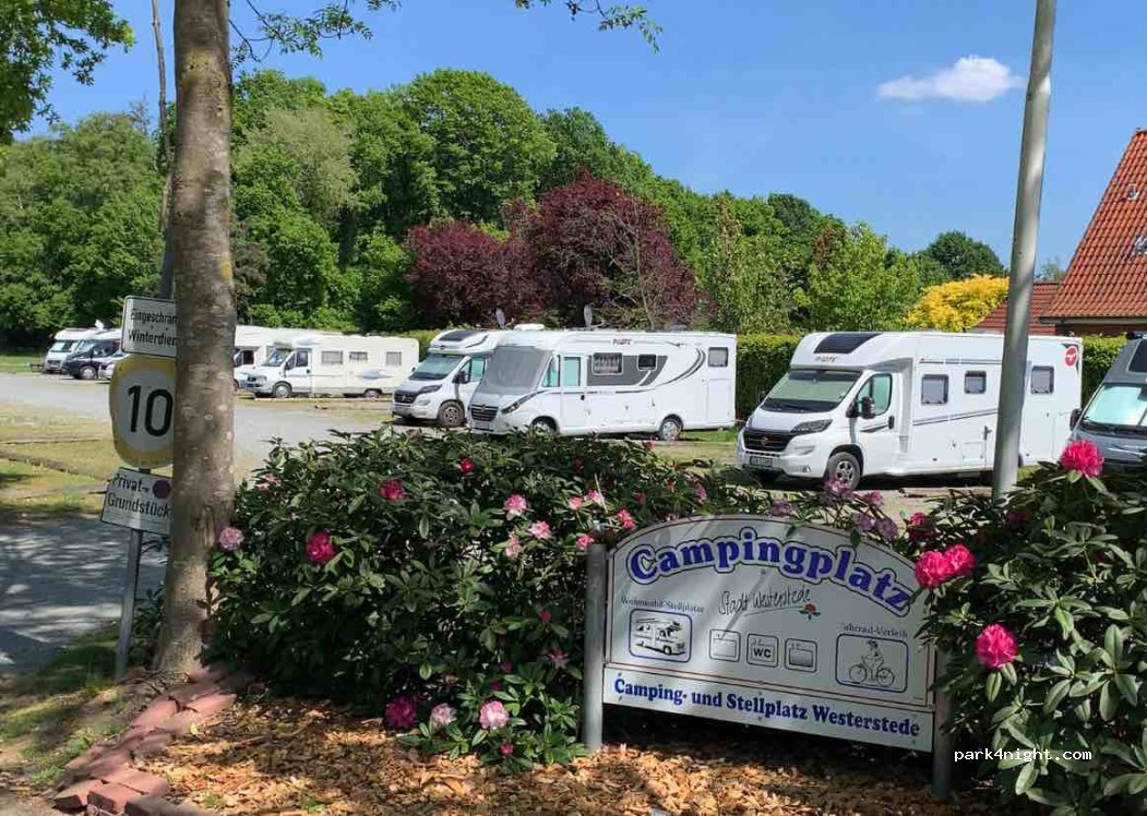 Camping and parking space Westerstede! drinking water, electricity and parking spaces are available for a fee. Very neat place and close to the center. It is a certified CP. Directly at the Greek restaurant, open Friday - Sunday (Restaurant) 17:00 - 22:00.