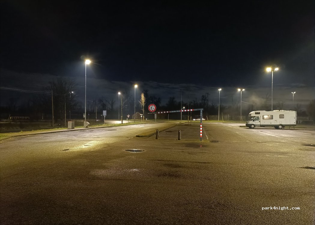 Posto tranquillo anche se vicino ad una strada, ben illuminato di notte. Però di giorno io non lascerei qui incustodito il mio camper , troppo alla mercé di qualsiasi mal intenzionato. Nessun problema per l'altezza le sbarre sono aperte. Si scarico nere e grigie, è possibile ricaricare gratis anche l'acqua. Una cortesia a tutti lasciate pulito il luogo siate civili!