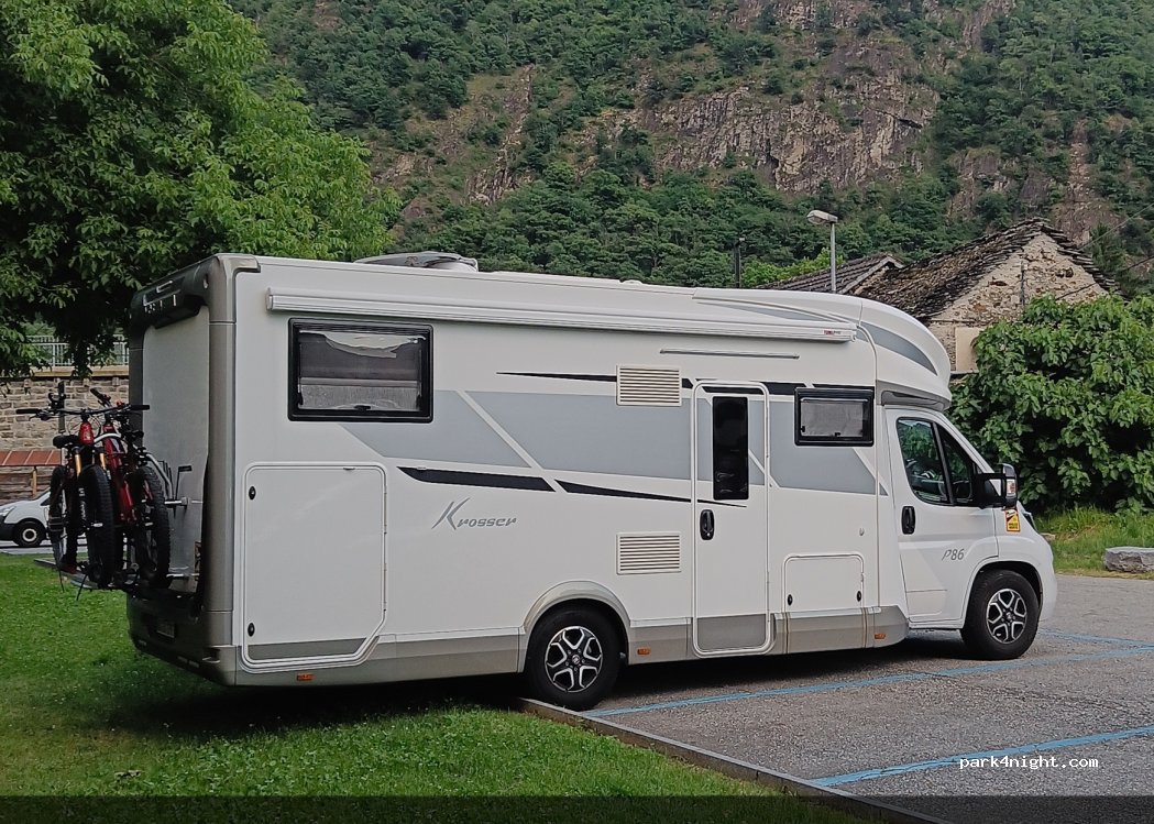 Super schöner, ruhiger Parkplatz am Rande eines kleinen Orts. Blick auf die Berge, leises Rauschen des Flusses - wunderschön! Kaffee gibt es im Ristorante ein paar Meter weiter. Die Nacht war sehr ruhig, wir haben wunderbar geschlafen.