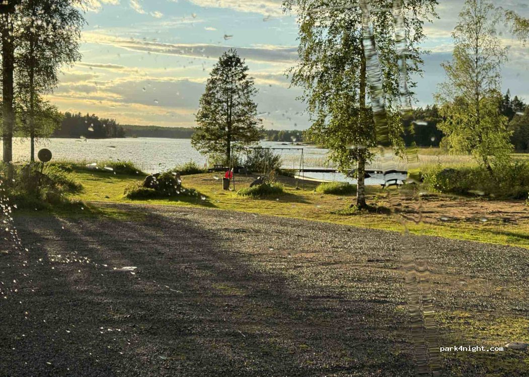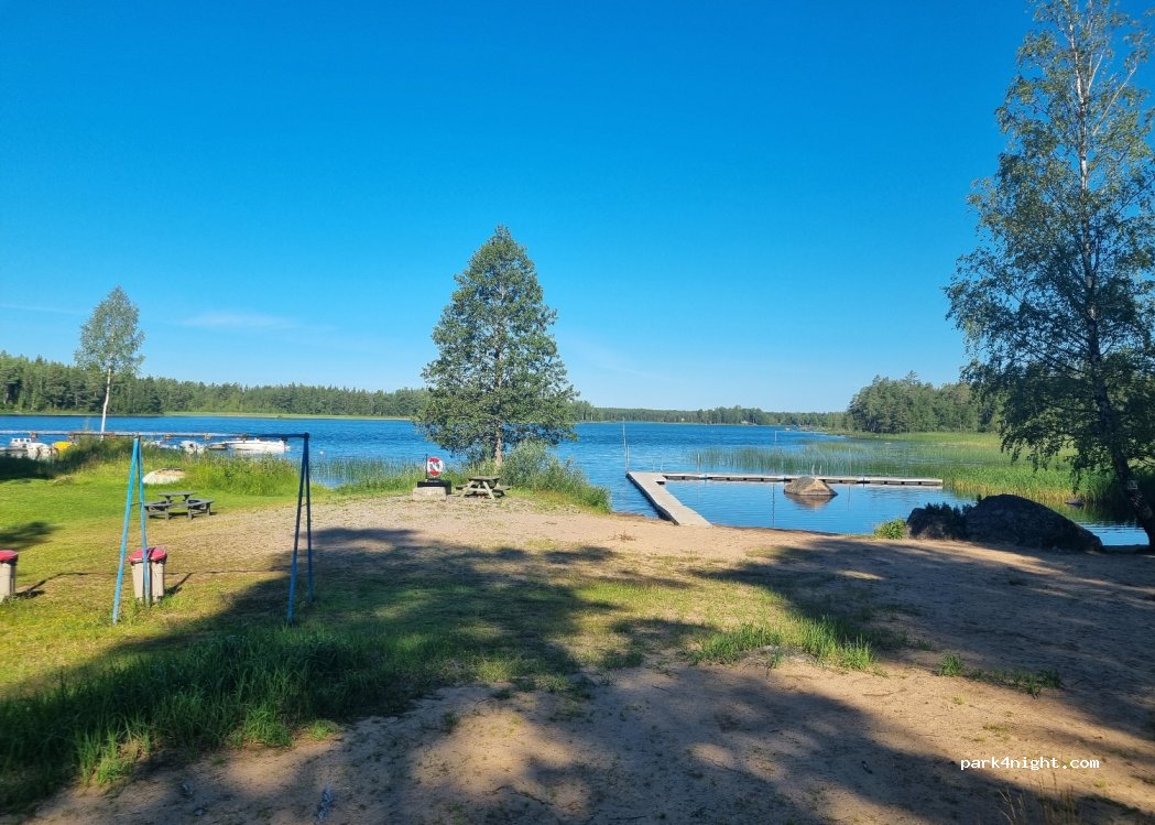 Badeplatz am See mitten im Wald. Wiese mit ausreichend Platz zum Parken, Steg im Wasser, Toiletten, Pumpe (kein Trinkwasser), Umkleidekabinen Bootsanleger der einheimischen Bevölkerung. Außerhalb der Saison wenig los. Liegt recht abgelegen von Ortschaften.