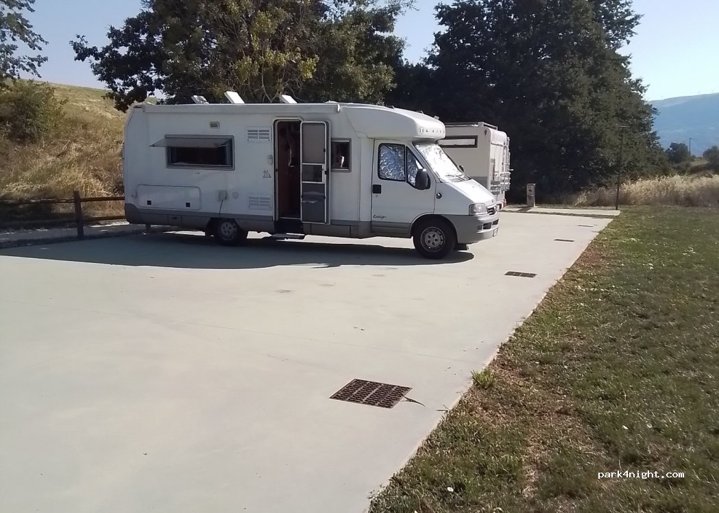Un gioiellino immerso nella natura e nel nulla della Valle del Sangro. Solo 4/5 posti, corrente per 4. Carico e scarico acque grigie e scure. Fontana con acqua fresca. Chiosco con ottimo caffè. Un po in pendenza su ottimo fondo in cemento. Paese a 1 km. Se cercate un luogo per isolarvi dal mondo, è perfetto!