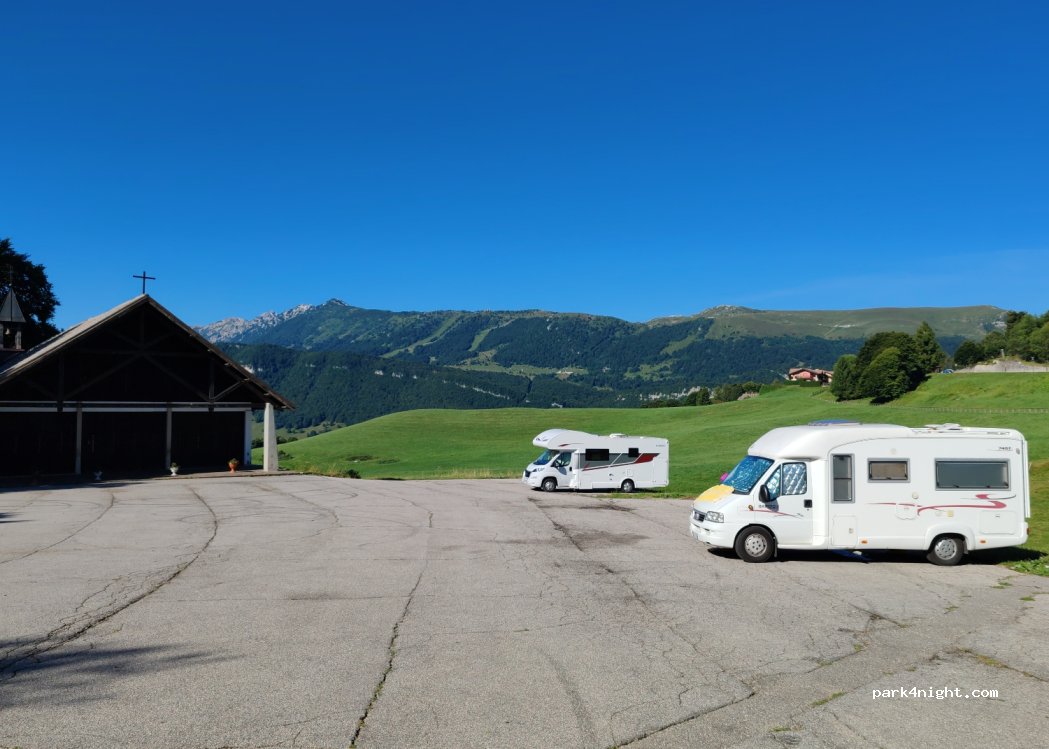 parcheggio gratuito e senza divieti ,c'è una fontana e due tavoli con panche su un lato ,tranquillo la notte ...io abito a 20 km giù in valle ma più volte l'anno lo uso per dormire al fresco e scappare dalla città per una notte..