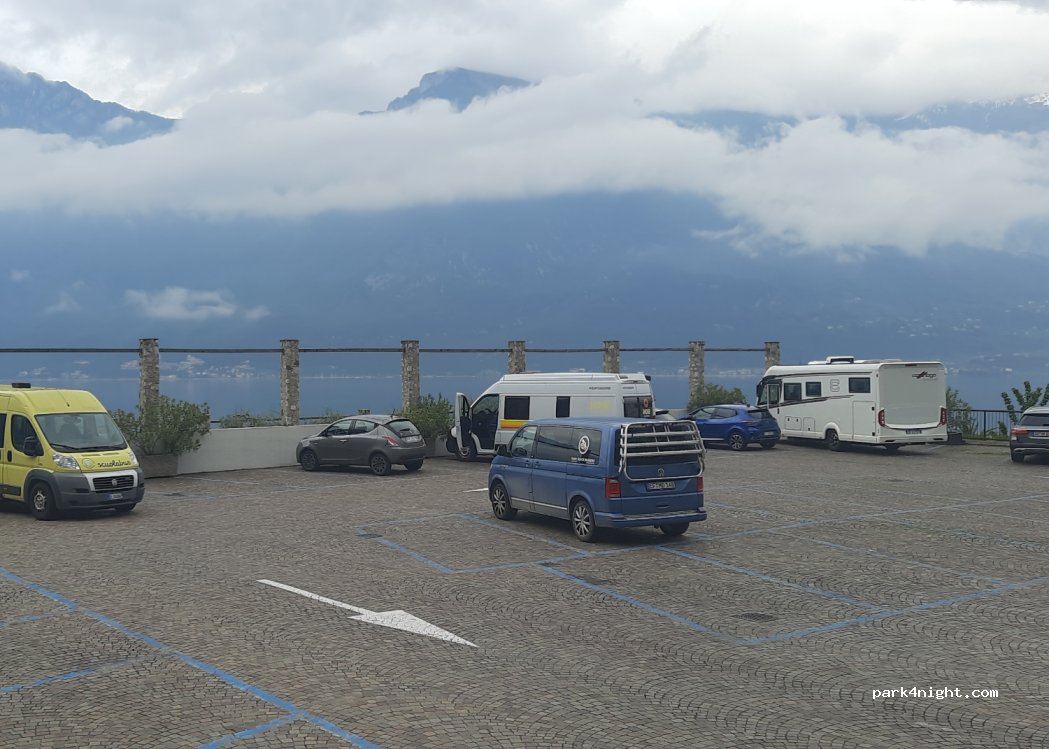 Wir waren Mitte Nov dort. Es waren nur ein Handvoll Autos da. Der Platz und die Aussicht war für uns perfekt. Es hatte aber auch 19 Grad. Die Schranken waren geöffnet. Parkgebühren wurden nicht berechnet. Wohl wegen Nebensaison. Wir standen 2 Nächte da. Allerdings war in Limone fast alles geschlossen.