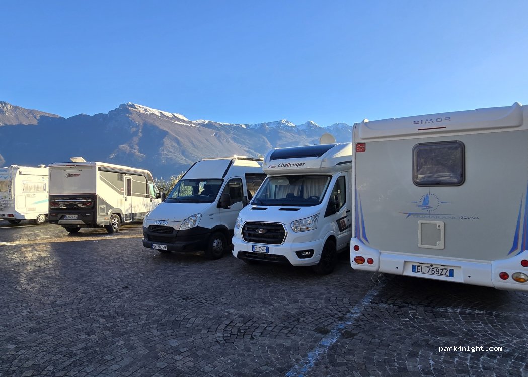 Apartamiento a 5 minutos del centro con buenas vistas al lago di Garda. Por el dia se llena el parking y no es apto para vehiculos de mas de 6 ó 7 metros. Por la noche muy tranquilos, solo quedan en el parking las Camper y alguna Autocaravana. Hemos pasado 2 dias y dormido dos noches por 50 euros. Gracias por dejar que se pernocte. Por favor cuidarlo para que no terminen por prohibirlo.