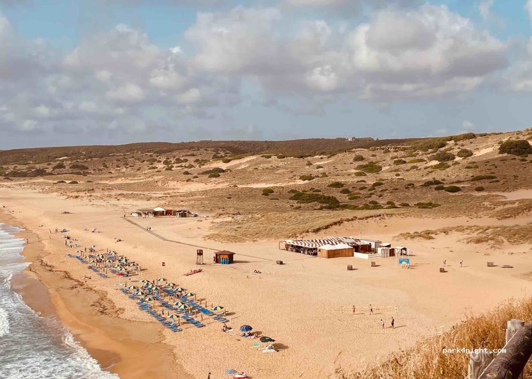 Nebensaison: Platz satt auf einem bewachten Parkplatz. Der Strand ist wunderschön und zu dieser Zeit menschenleer. Die WC- und Duschanlagen sind leider nicht mehr geöffnet. Das gibt einen Stern Abzug, weil man hier sonst prima, wenn auch nicht wirklich im Grünen, über Nacht stehen könnte.