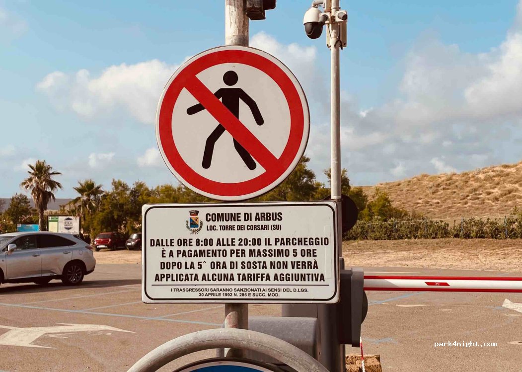 Small parking, we came early in the morning and it was empty. The cost for RVs and Vans (length more than 5 mt) is 6€ for half day (which is twice the cost for cars). Here we spent the morning only. Both the beach and the sea are very beautiful. The view from the Tower is wonderful (free parking available in front of it).