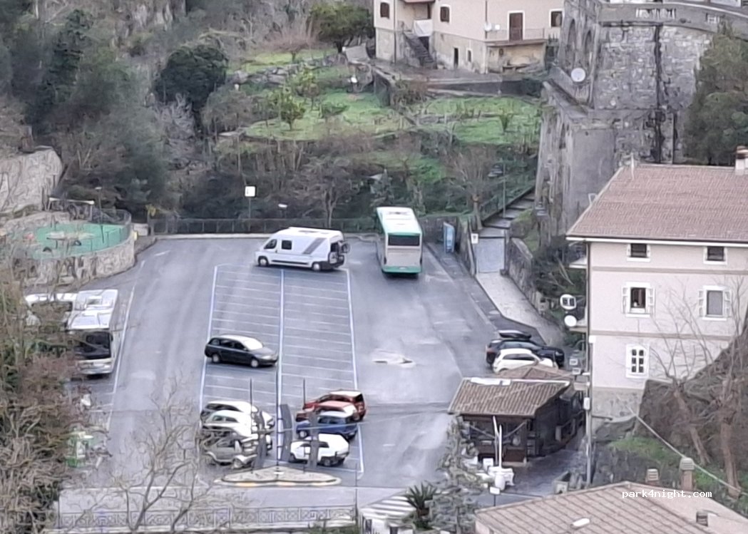 Large parking very flat, very quiet. Bar next, lady very available and kind. Very nice view and beautiful hikes next to this lost corner of Pollino National Park. Attention, Thursday morning, there is the market on this car park!