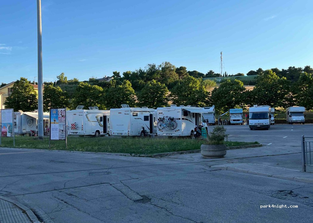 Area gestita dalla pro loco comodissima e tranquilla usata sia in estate che in inverno vale sempre la pena fare una sosta qui il supermercato è a un paio di minuti a piedi con 5 sei in centro e al mare silenziosa anche la notte