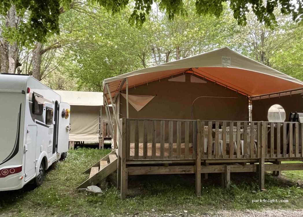 Nous avons choisi ce camping pour y passer la nuit.Ce dernier étant en travaux,pas de choix de l’emplacement(il n’en restait que 2).Très déçus de nous retrouver en brochette avec d’autres camping car sans aucune intimité avec des sanitaires en travaux.Mais une tente personnelle étant à notre disposition avec toutes les commodités (WC, douche et cuisine)en bord de rivière ont satisfait nos attentes