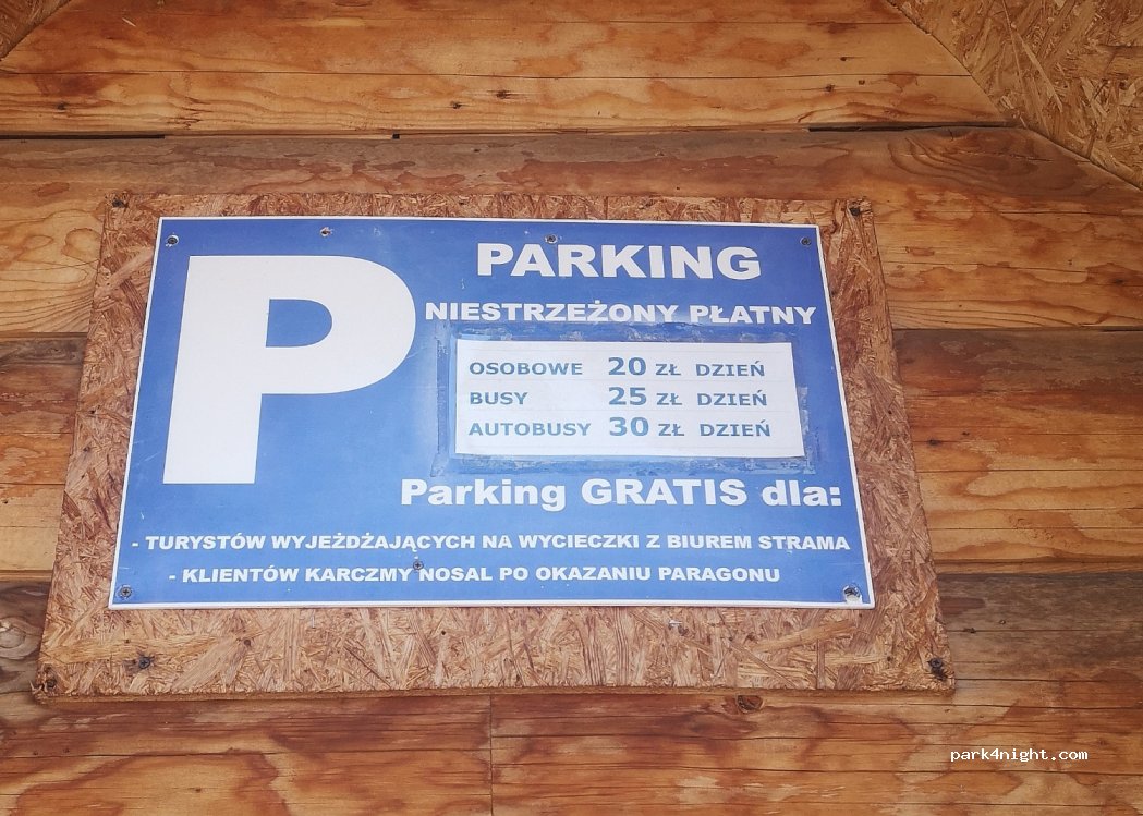 Se paga 10 zlt por día de 7 a 19:00 la noche es gratis tranquilo posibilidad de llenar agua en el grifo de los bus parada de bus cerca y teleferico cerca a pie