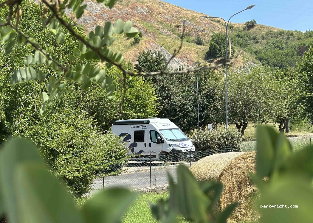 Posto tranquillo adiacente ad un centro sociale frequentato dai locali. Di giorno bambini con le bici e la sera un po' di movimento di auto. un forno nelle vicinanze sforna delle ottime brioches. Nottata tranquilla e silenziosa con possibilità di passeggiate nelle vicinanze. Acqua e bidoni della spazzatura presenti.