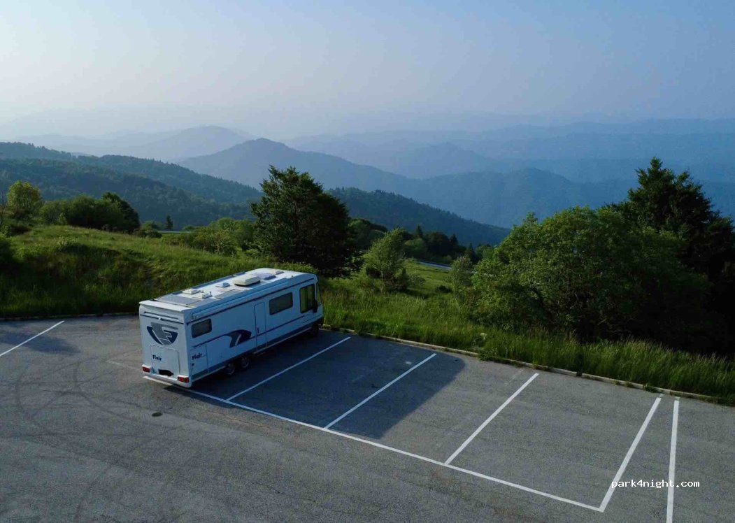 Concrete parking lot with amazing view. I was there on the weekend and only one other camper was there. Free of charge and overnight is allowed but there are no facilities. The road up is quite steep and narrow. Great hiking place but not worth to go up just to sleep.