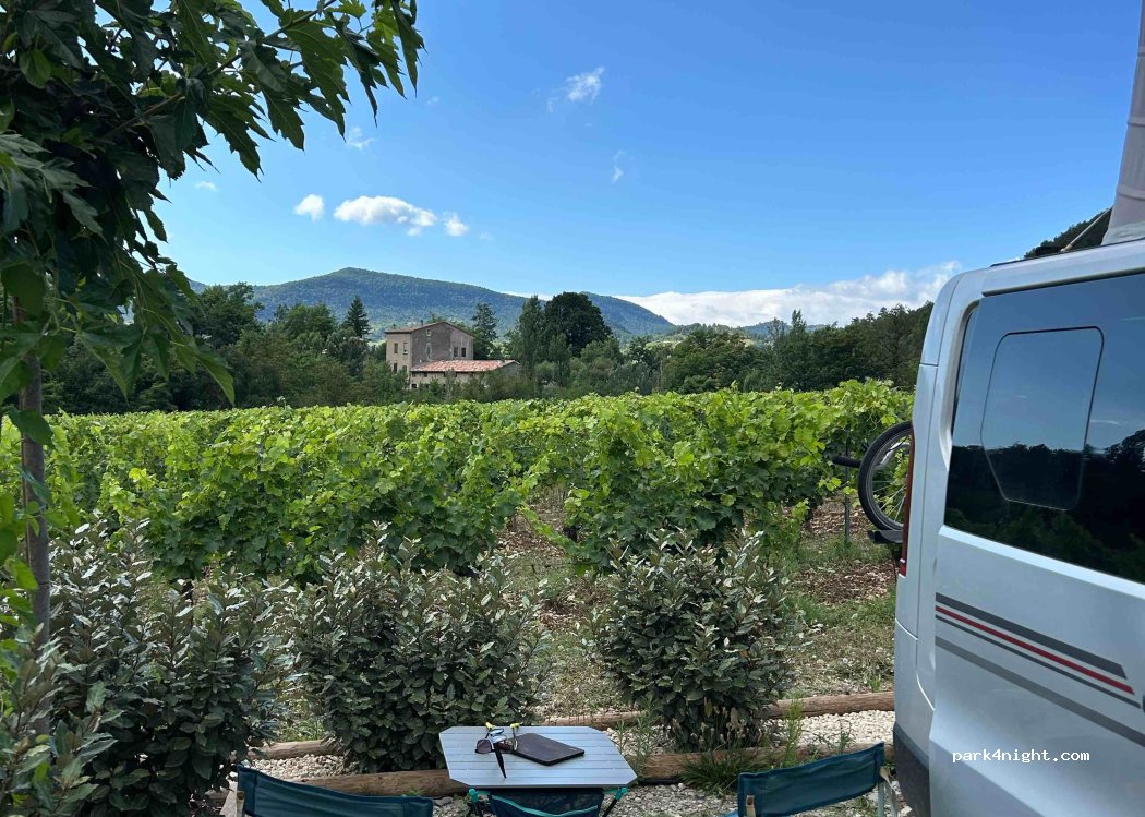 Une super nuit dans les vignes. Très bel accueil pour la dégustation. On peut aller au village à pied en suivant le chemin au bord de la Drôme et en remontant juste avant le tunnel. Baignade dans la Drôme. Merci pour cette possibilité de nuitée.