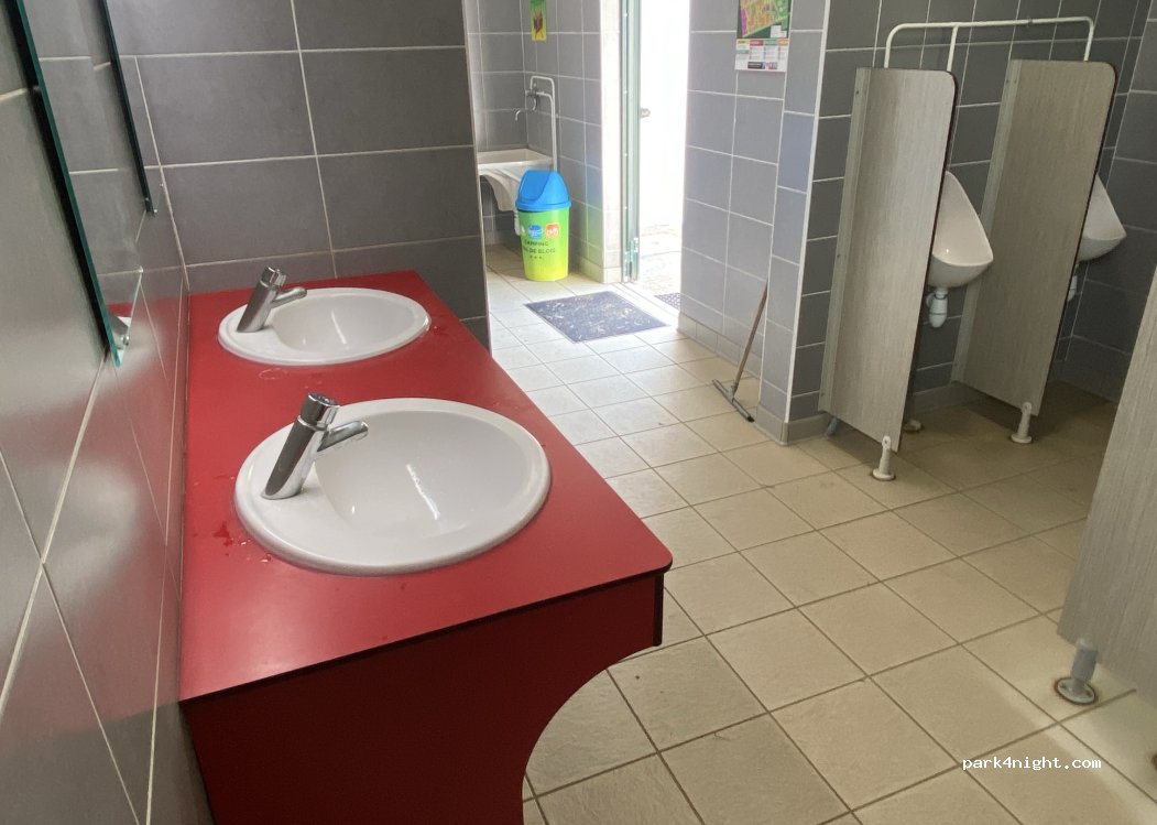 Sanitaires propres eau bien chaude. Par contre largement insuffisants. Attente que ce soit pour les lavabos douches WC. Bien situé par rapport à Blois. Emplacement immense! Possibilité de commande pain et viennoiseries pour le lendemain.