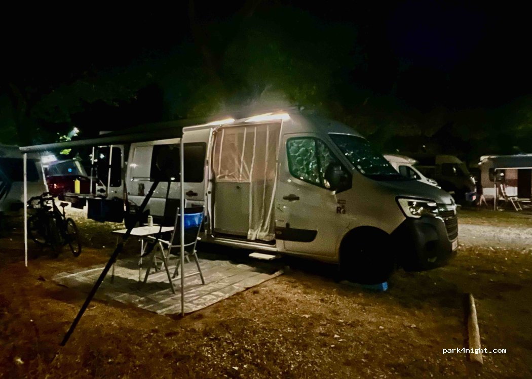 Beautiful camping located right next to the lake. Everything is very clean, spacious and nice. Lots of shade from trees. Friendly staff. Nice restaurant and shop next to the camping. We payed ca 32€ for 1 campervan, 2 persons and a small dog. Drinking water from a hose costs 1€ per 3 minutes. Gray and black water disposal is free. Washing machines cost 4€ per laundry. Overall - very nice place, we highly recommend it :)
