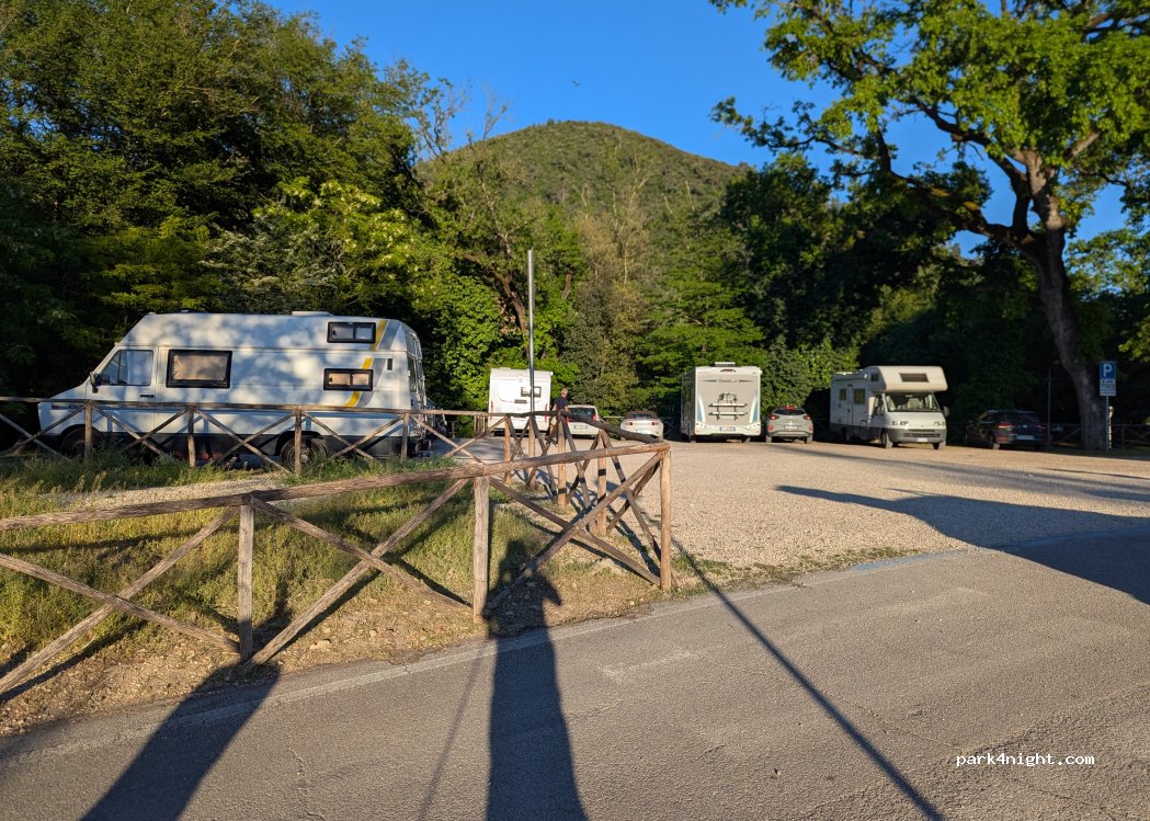 Grand parking très bien pour visiter les chutes de Marmore Restaurant bar à proximité Personel extrêmement gentil. Nous sommes rester 3 jours avec le cc sur le parking on a eu aucun problème Grand parc juste à coter pour les animaux Je recommande