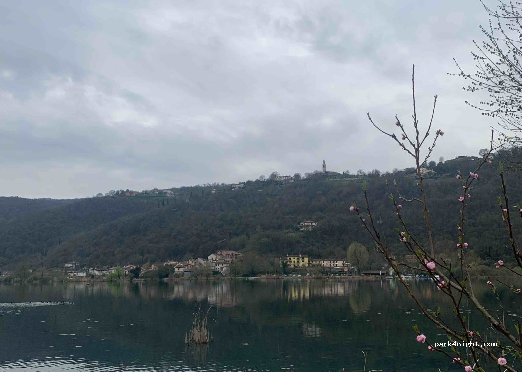 Viel besser als in Vicenza auf einer asphaltierten Fläche zu stehen. Der Parkplatz ist videoüberwacht und der See eignet sich für einen Spaziergang. Leider kann man hier nicht baden.
