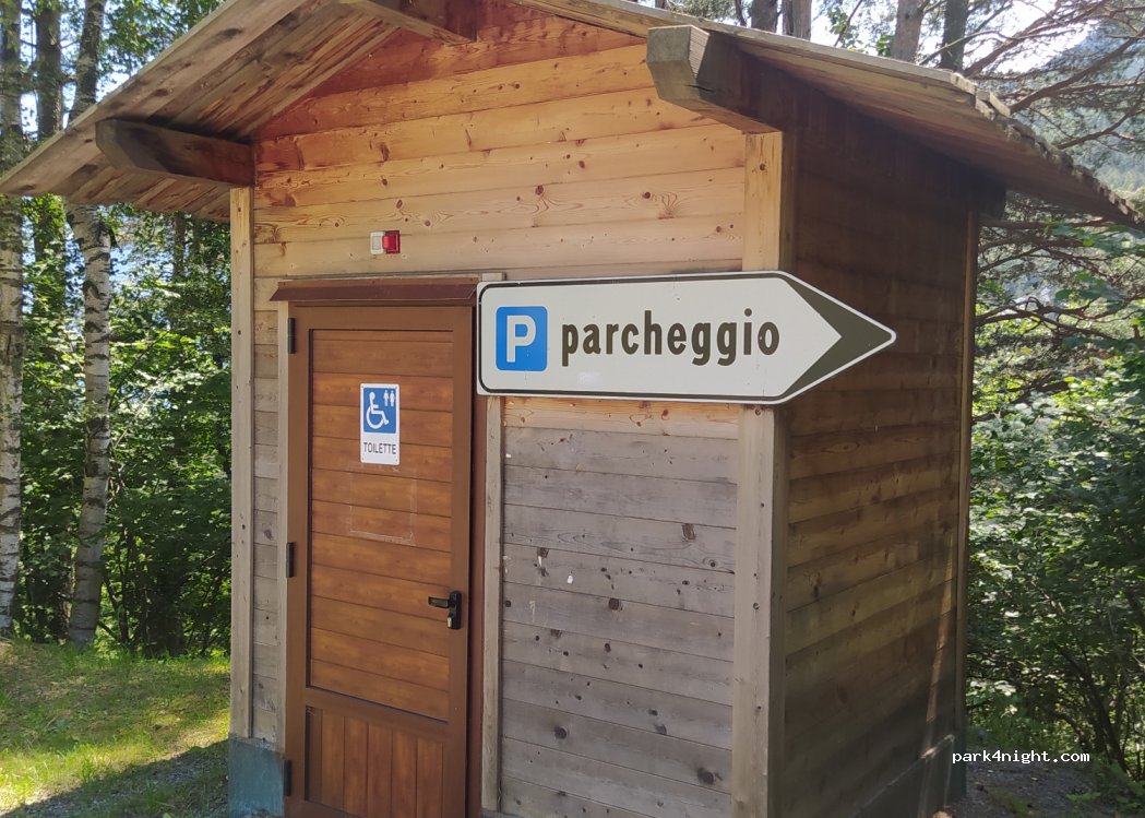Parking idéal ! Arrivée de nuit sans souci en voiture (tente de toit), le parking était vide ce qui nous a permis de nous installer à notre aise. Vue exceptionnelle, toilettes à l’entrée du parking, randonnée magnifique jusqu’au lac de Serva. On recommande