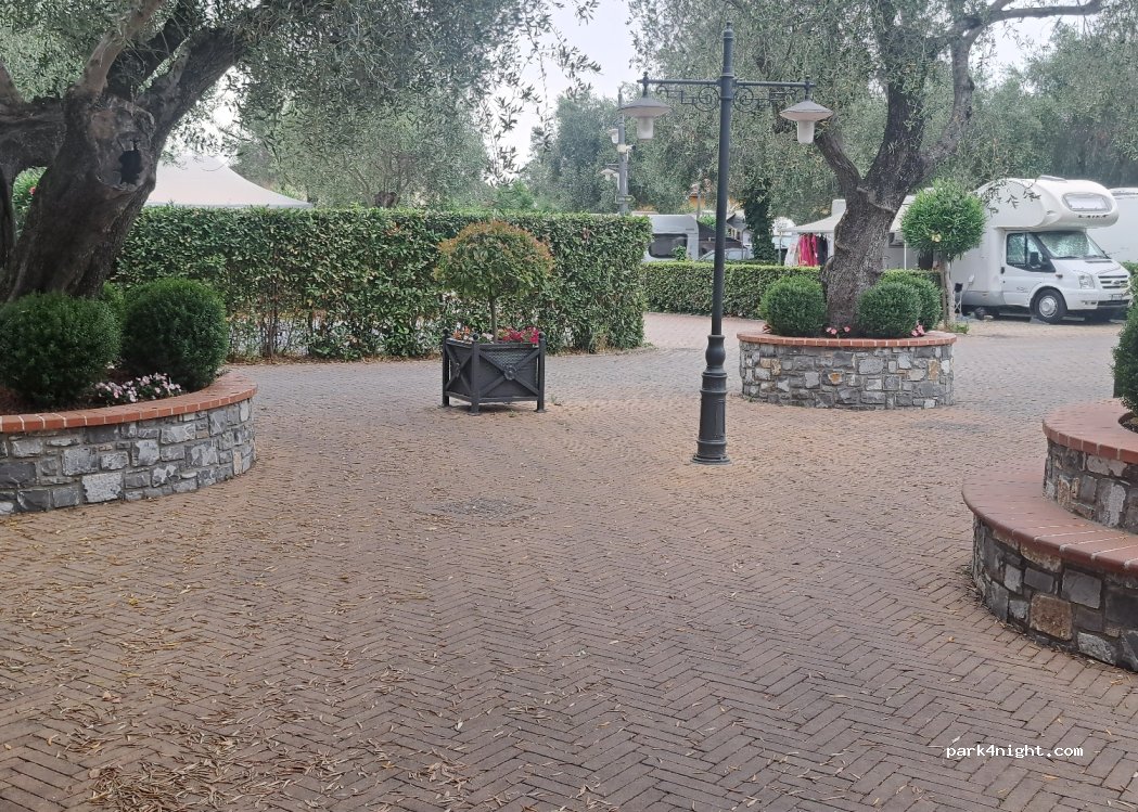 Camping au milieu des oliviers, l autoroute n est pas loin mais pas gênante, les sanitaires sont très propres, acceuil agréable en français. Les emplacements sont équipés d un point d eau, d électricité et de vidange. Le WiFi fonctionne très bien sur l ensemble du camping. A noter belle salle de sport. Très léger bemol le camping n est pas équipé de dalle de vidange.